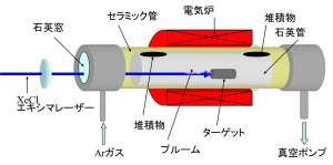 カーボンナノチューブは、電気伝導性や機械的強度などの特性に優れた材料としてエレクトロニクス・エネルギー分野なので注目されています。本研究では、紫外レーザーを使ったカーボンナノチューブの合成に取り組んでいます。現在、直径が1.2から1.7